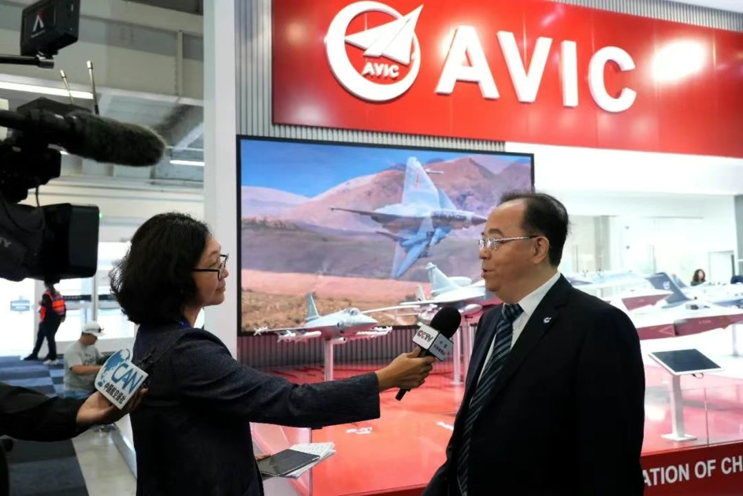 ▲中国航空工业集团巴黎航展代表团团长李清堂接管媒体采访